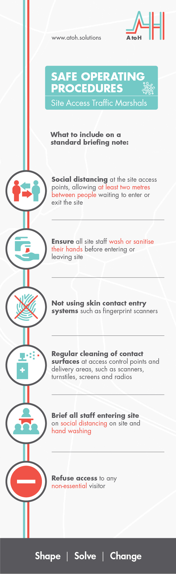 As Site Access Traffic Marshals manage the entry and exit points of a site, they are at daily risk of contact with site staff, delivery drivers, visitors and the general public.